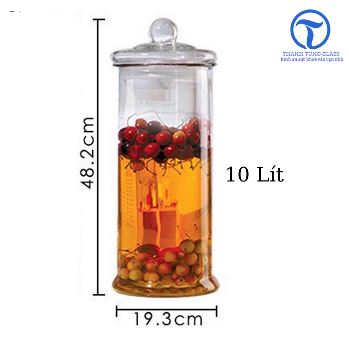 Bình ngâm rượu thủy tinh trụ trơn 10 lít. có vòi & không vòi