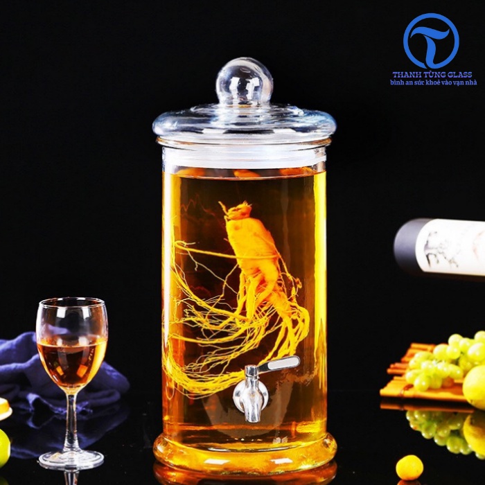 Giới thiệu Bình ngâm rượu thủy tinh trụ trơn 10 lít. có vòi & không vòi