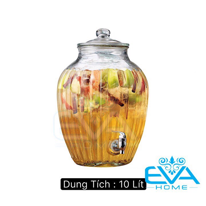 Bình Ngâm Thủy Tinh 10 Lít Có Van Dáng Chum Hoạ Tiết Trái Bí 217 10LV