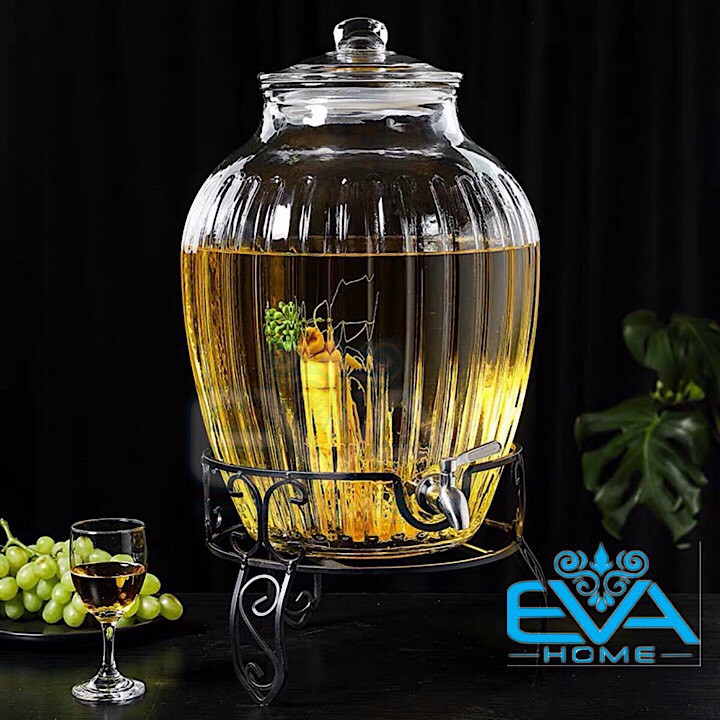 - Bình Thủy Tinh Ngâm Sâm 10 Lít có vòi dáng Chum Họa tiết trái bí có Kiếu dáng sang trọng bắt mắt . với các đường nổi trên bề mặt và điểm nhấn là nắp thủy tinh và hình dáng giống trái bí.Thiết kế nổi bậc với họa tiết sọc xuông bao quanh bình sâm. làm nổi bậc sản phẩm ngâm bên trong.