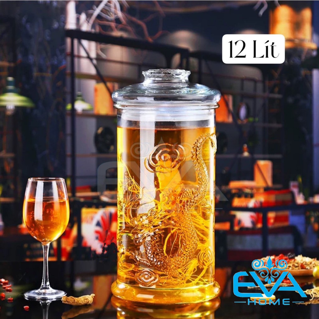 - Bình Thủy Tinh Ngâm Sâm 12 lít dáng trụ rồng còn có vẻ bề ngoài bắt mắt, với các đường nổi trên bề mặt hình con rồng và điểm nhấn là nắp thủy tinh và hình dáng Trụ Thẳng đứng.