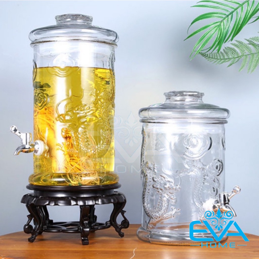 Nhà cửa & Đời sống > Bộ đồ bàn ăn > Bình nước & phụ kiện || Bình Ngâm Thuỷ Tinh 15 Lít Có Van Dáng Trụ Hoa Văn Rồng - TR15LV M1023Còn hàng