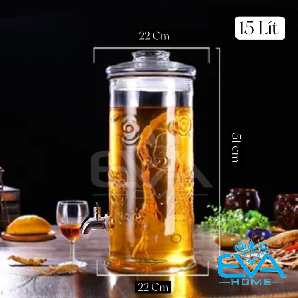 Bình Ngâm Thuỷ Tinh 15 Lít Có Van Dáng Trụ Hoa Văn Rồng - TR15LV M1023Dung tích thực tế từ 13-14 Lít