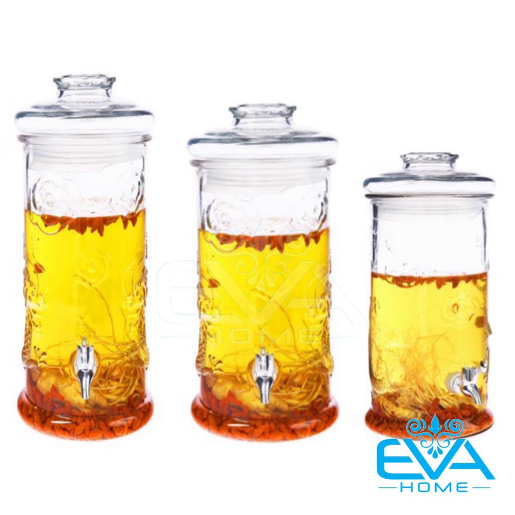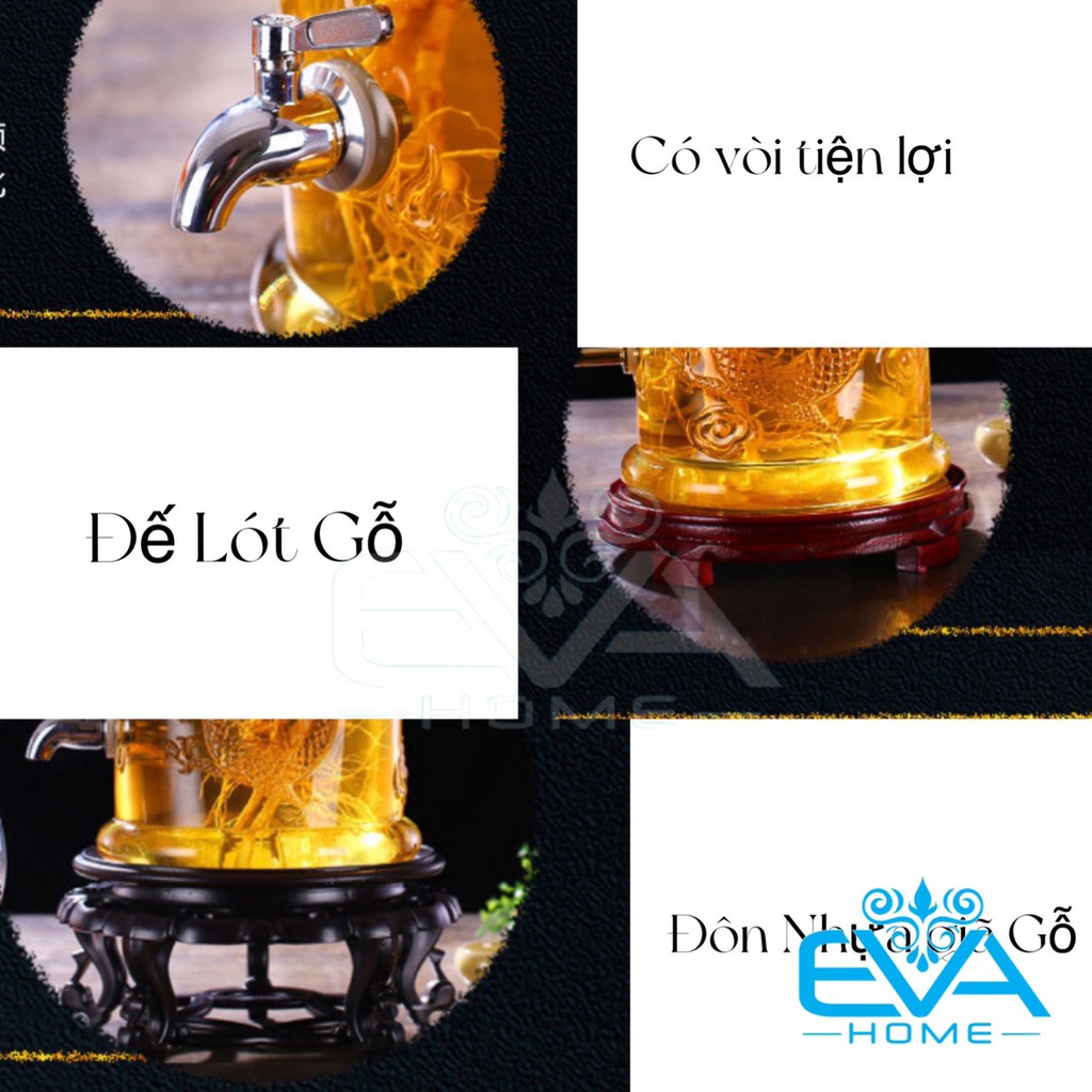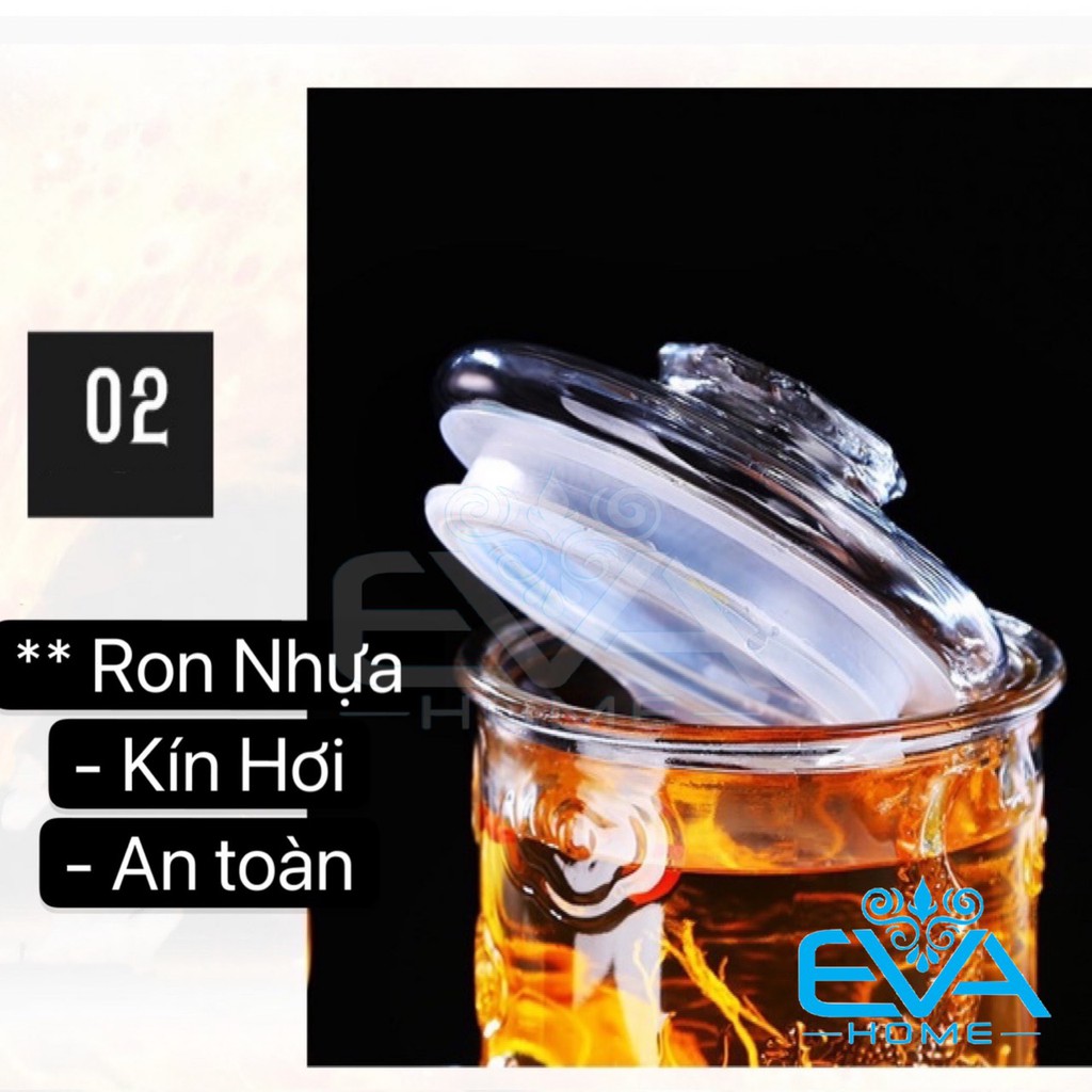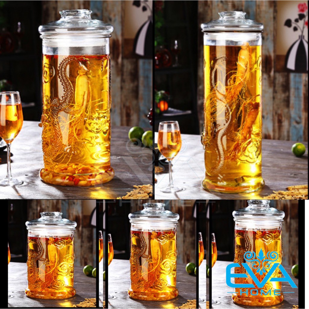 *** Điểm nổi bật Bình Ngâm Rươu Thuỷ tinh dáng hình trụ rồng có van