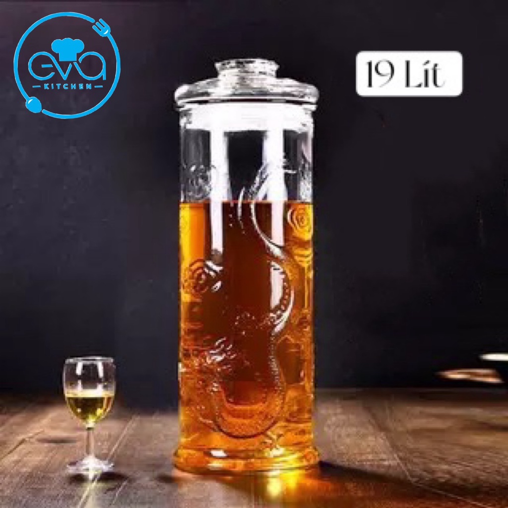 - Bình Thủy Tinh Ngâm Sâm 19 lít dáng trụ rồng còn có vẻ bề ngoài bắt mắt, với các đường nổi trên bề mặt hình con rồng và điểm nhấn là nắp thủy tinh và hình dáng Trụ Thẳng đứng.