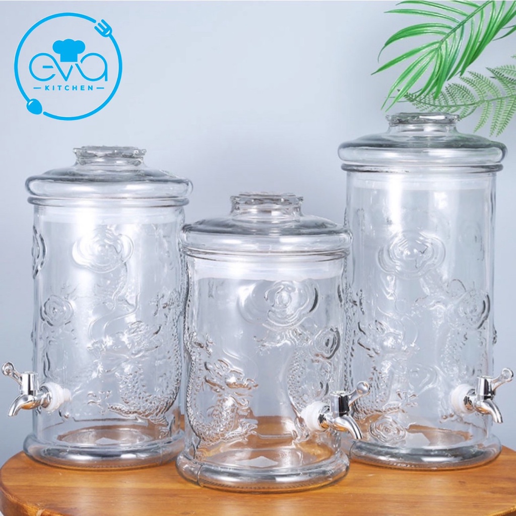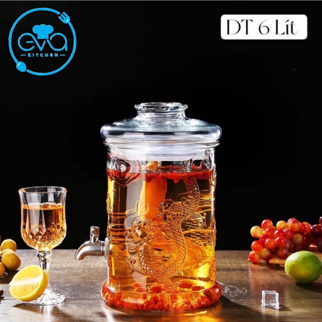 Nhà cửa & Đời sống > Bộ đồ bàn ăn > Bình nước & phụ kiện || Bình Ngâm Thuỷ Tinh 6 Lít Có Van Dáng Trụ Hoa Văn Rồng - TR6LV M1021Còn hàng