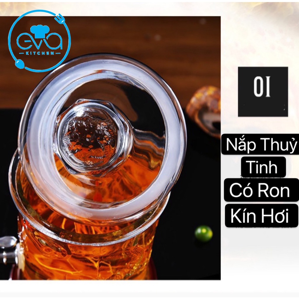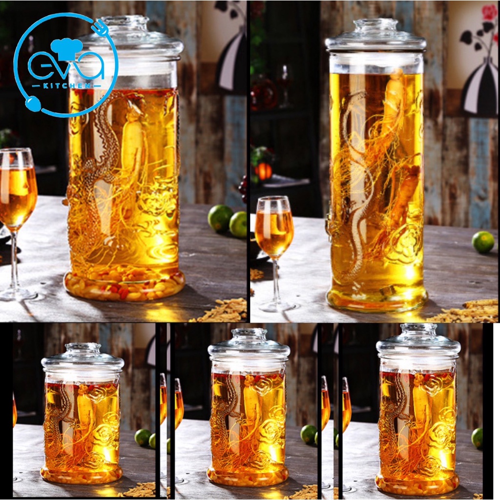 *** Điểm nổi bật Bình Ngâm Rươu Thuỷ tinh dáng hình trụ rồng có van