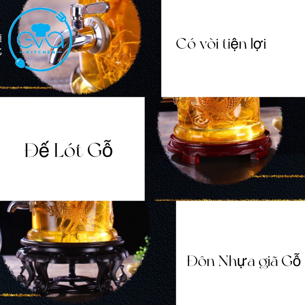 ***Mô tả sản phẩm : Bình ngâm sâm thuỷ tinh hình trụ Hoa Văn Rồng 6 Lít Có Van