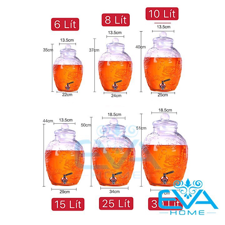 - Bình Ngâm thủy tinh rồng phụng 6 lít có van với chất liệu thủy tinh trong trắng rất dày an tâm khi sử dụng, với nắp bình thủy tinh có ron nhựa kín hơi khi bạn sử dụng, bạn không phải lo ngại khi rót thành phẩm ra sử dụng
