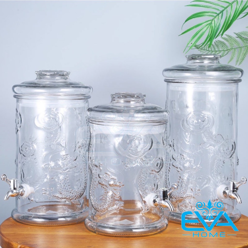 Nhà cửa & Đời sống > Bộ đồ bàn ăn > Bình nước & phụ kiện || Bình Ngâm Thuỷ Tinh 8 Lít Có Van Dáng Trụ Hoa Văn Rồng - TR8LV M1028Còn hàng