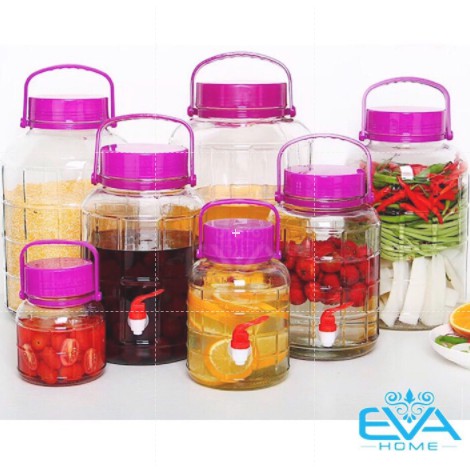 Giới thiệu Bình Ngâm Thủy Tinh Quai Xách Nắp Tím 10 Lít không van và có van