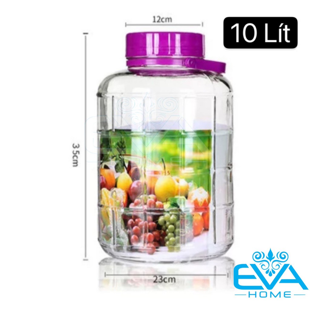 Bình Ngâm Thủy Tinh Quai Xách Nắp Tím 10 Lít không van và có van