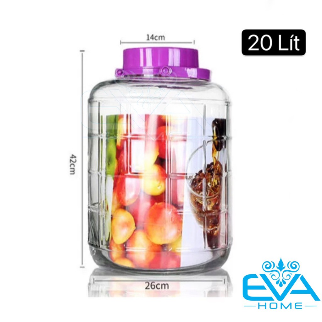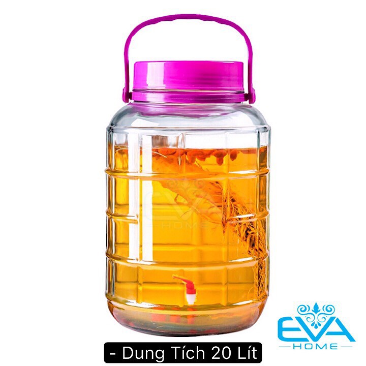 Điểm nổi bật : Bình thủy tinh Ngâm Rươu 20 Lít Nắp Tím Có Van