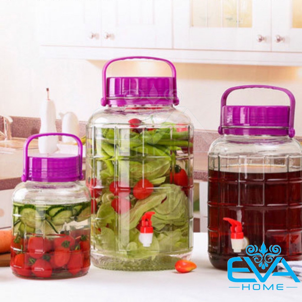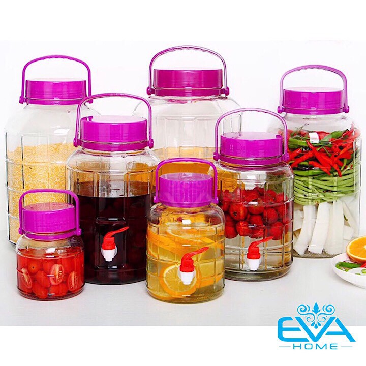+ Bình Ngâm Thủy Tinh Quai Xách Nắp Tím 5 Lít Có Van – QX5LV