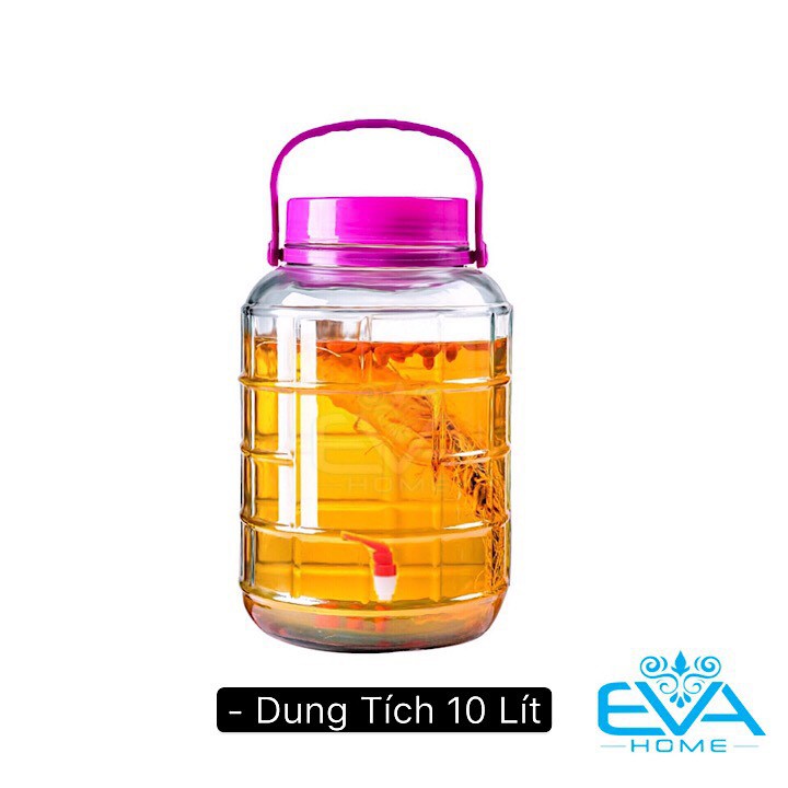 Bình thủy tinh 10 lít ngâm rươu sâm có Van và quai xách
