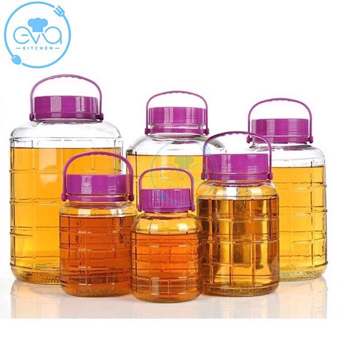 + Bình Ngâm Thủy Tinh Quai Xách Nắp Tím 5 Lít – QX5L