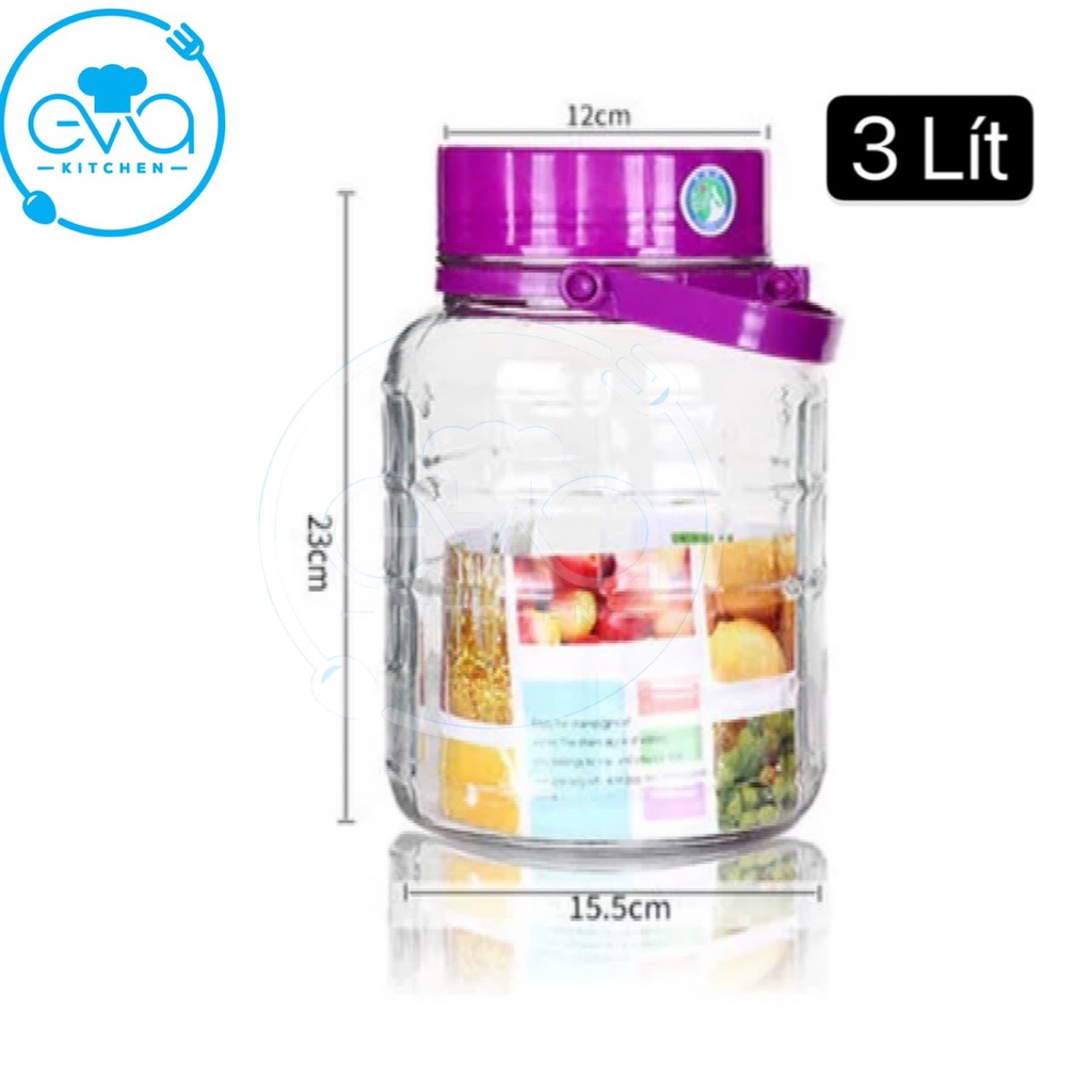 Giới thiệu Bình Ngâm Thủy Tinh Quai Xách Nắp Tím 3 Lít có Van– QX3LV