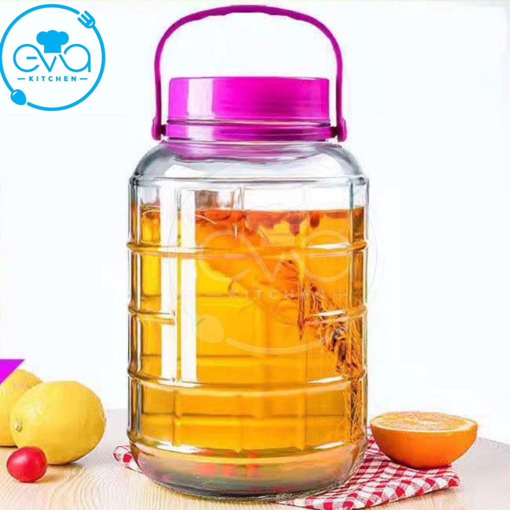 + Bình Ngâm Thủy Tinh Quai Xách Nắp Tím 8 Lít Có Van – QX8LV