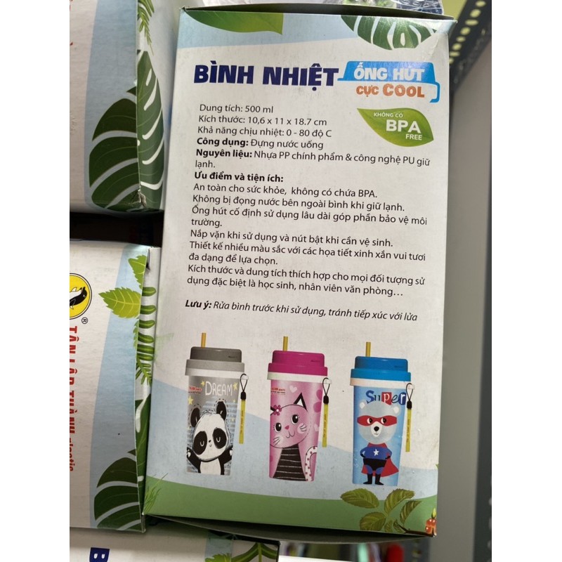 Shop về mẫu bình giữ nhiệt có quai xách + luôn ống hút để phục vụ mùa đi học của các bé đây ạ Khi xoay ống hút mới đưa ra & khi vặn lại ống sẽ ẩn ở trong giữ cho sạch sẽ nên phụ huynh yên tâm👉Nguyên liệu : Nhựa PP chính phẩm & công nghệ PU giữ lạnh