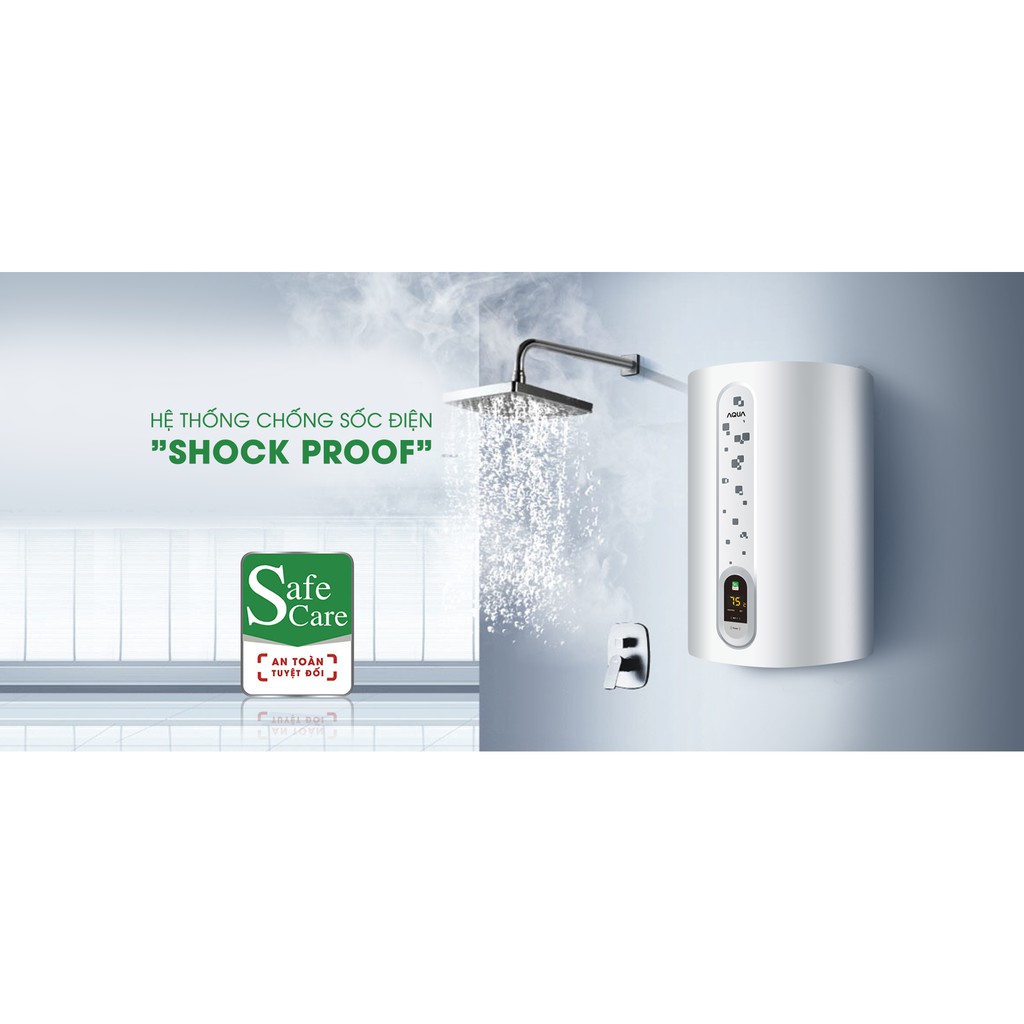 Bình nóng lạnh Aqua AES20V-ED(H)Cấu trúc máy đặc biệt chống sốc điện được thiết kế cho những khu vực hay gặp vấn đề về điện như không nối đất, kết nối điện sai, rò rỉ điện. Vì vậy, người sử dụng được an toàn tuyệt đối nếu có sự cố về điện.