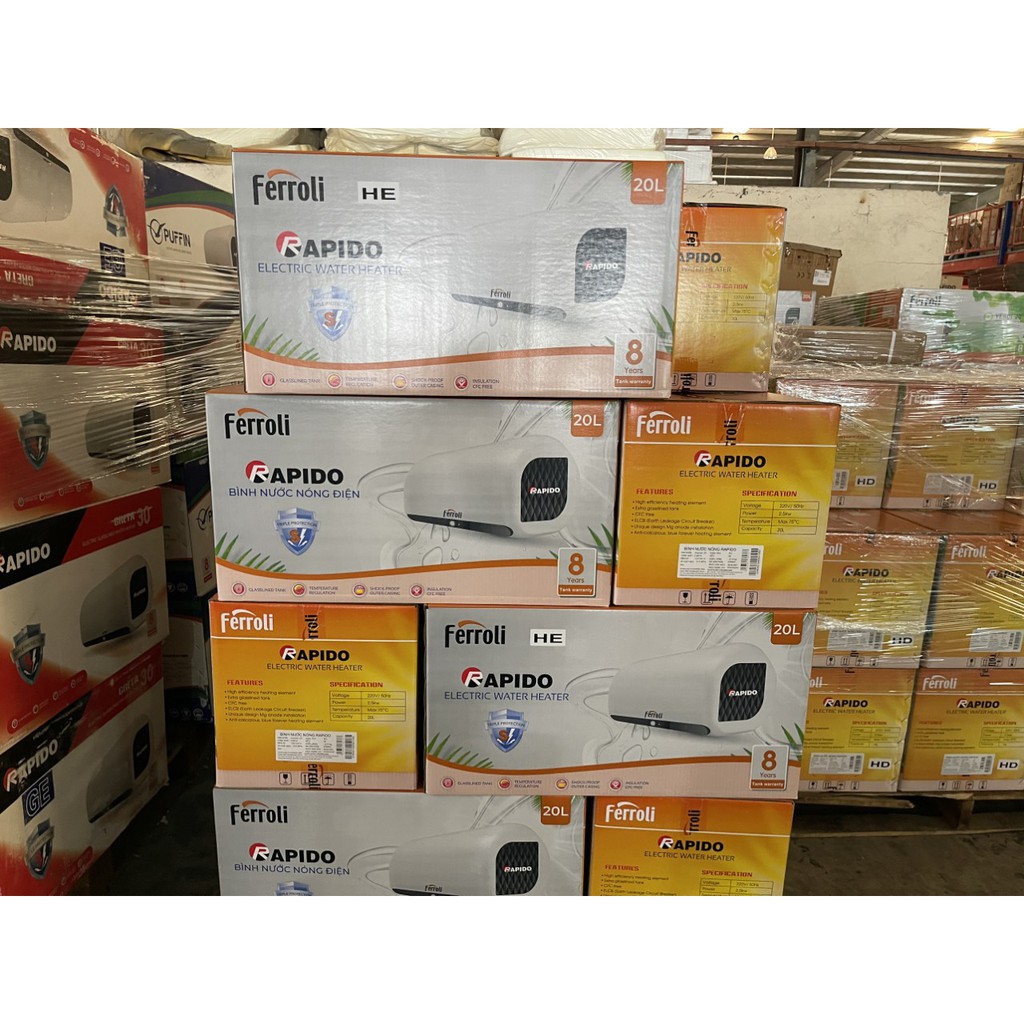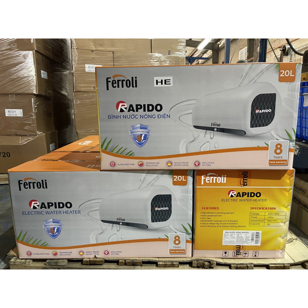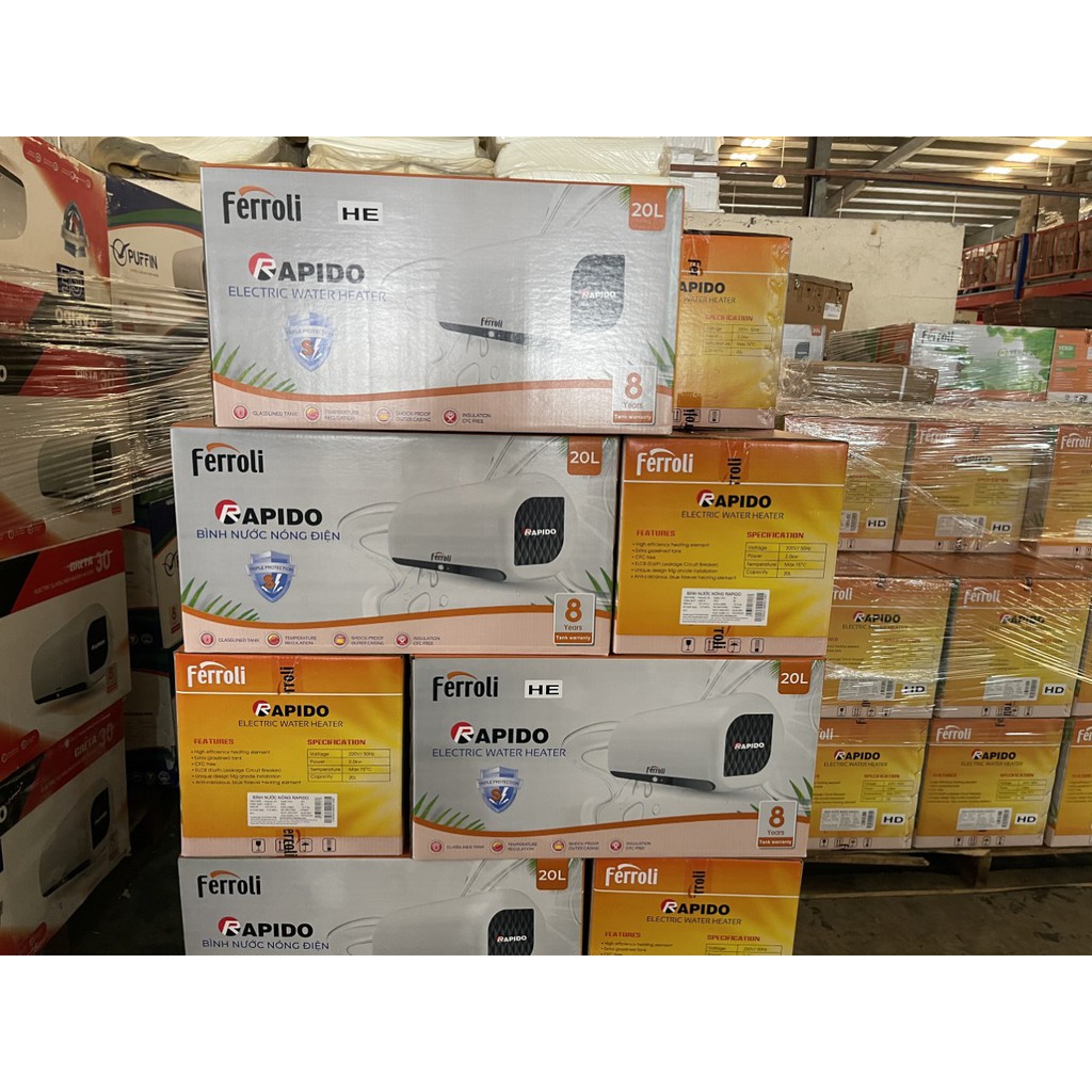 Bình nóng lạnh Ferroli Rapido HE, dung tích 15l/20l/30l, thanh Magie lớn - Bảo hành 36 tháng