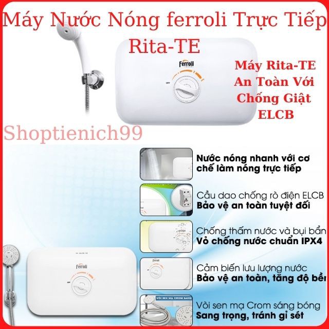 Bình Nóng Lạnh Trực Tiếp Ferroli / Máy Nước Nóng Trực Tiếp Ferroli Rita TM/TE Sử Dụng Cho Phòng Tắm Và Tủ Bếp Chính Hãng Siêu Bền Giá Rẻ.🍀 ĐẶC ĐIỂM NỔI TRỘI CỦA BÌNH NƯỚC NÓNG/MÁY NƯỚC NÓNG FERROLI RITA TM VÀ RITA TE: