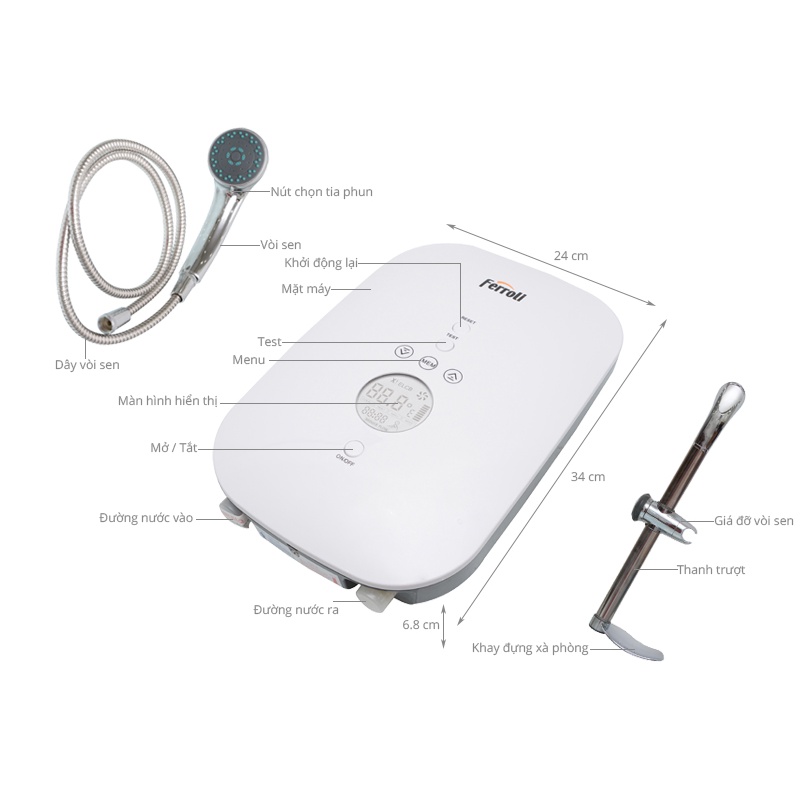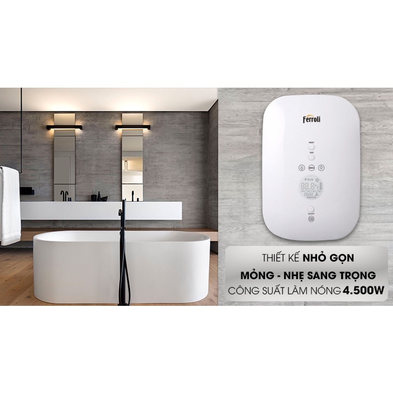 Thiết Bị Điện Gia Dụng > Thiết bị điện gia dụng lớn > Máy nước nóng || Bình Nóng Lạnh Trực Tiếp Ferroli DIVO SDN 4500W - Màn Hình Hiển Thị, Không Bơm, Dây Bát Sen, Thanh TrượtSo sánh giá ×