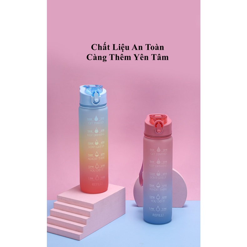 Giới thiệu Bình Nước 1-2 Lít Thể Thao Nhắc Nhở Uống Nước Mỗi Ngày Tích Hợp Ống Hút Có vạch kẻ chia ML và Báo Giờ Chất Liệu An Toàn