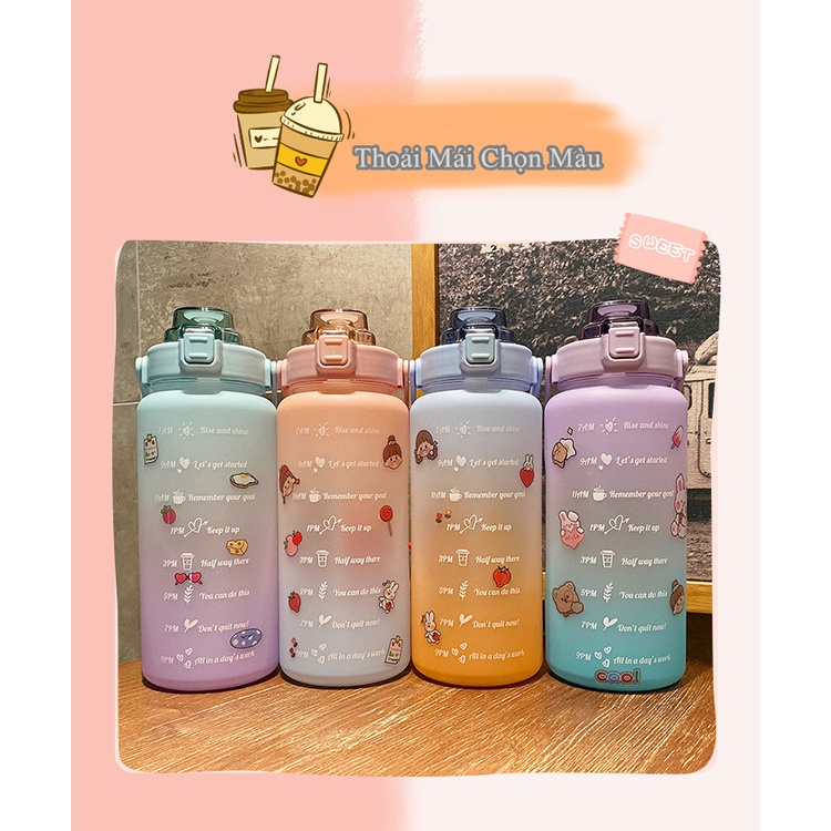 1. Thông tin sản phẩm bình nước dễ thương 2l có ống hút• Dung tích lớn 2000ml thoải mái sử dụng 1 ngày dài, cung cấp đủ lượng nước cơ thể cần