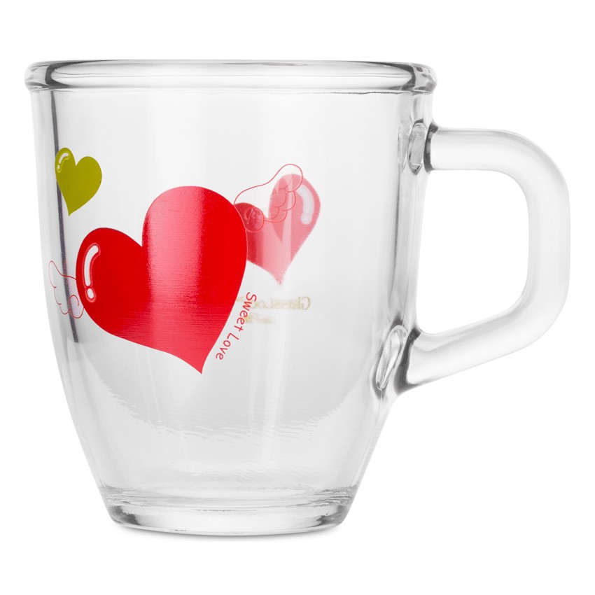 Bình nước 1000ml và 4 cốc hoa văn trái tim 370ml GLASSLOCK CG982