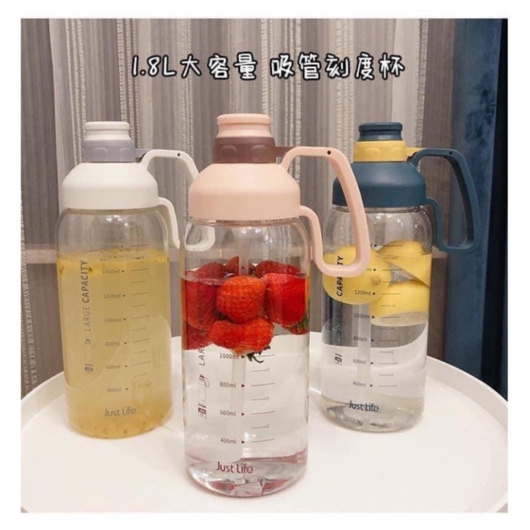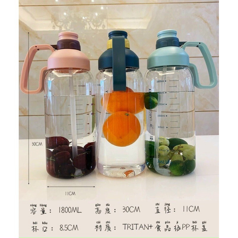 👉🏻 Bình nhựa big size 1800ml có ống hút và vạch chia ml
