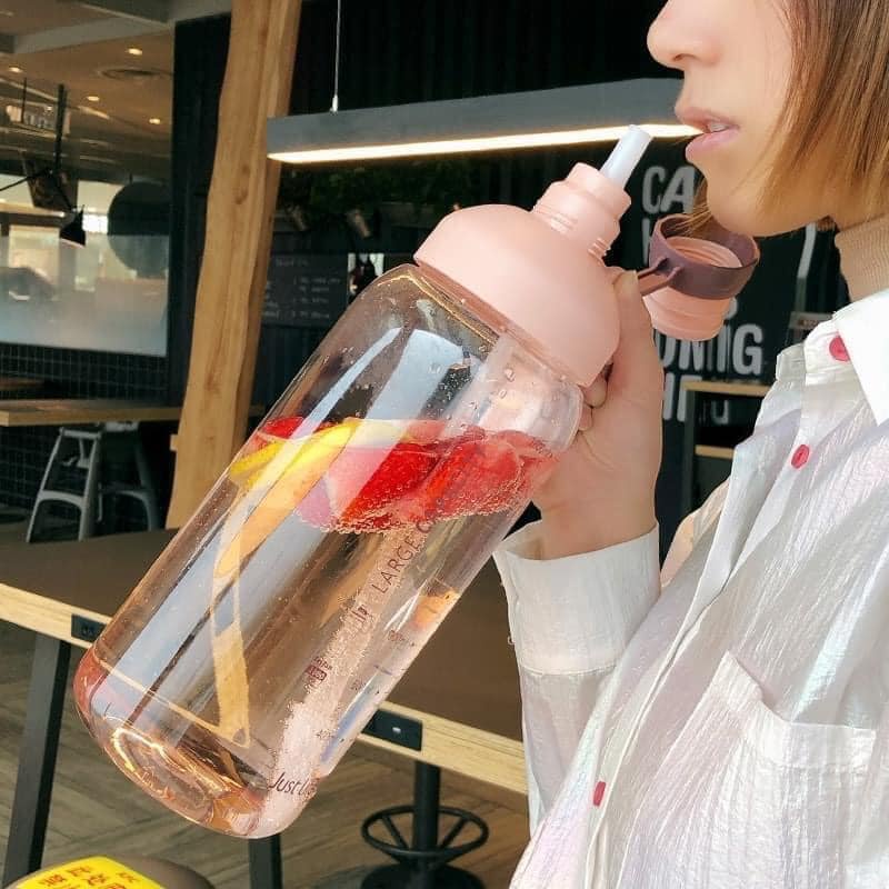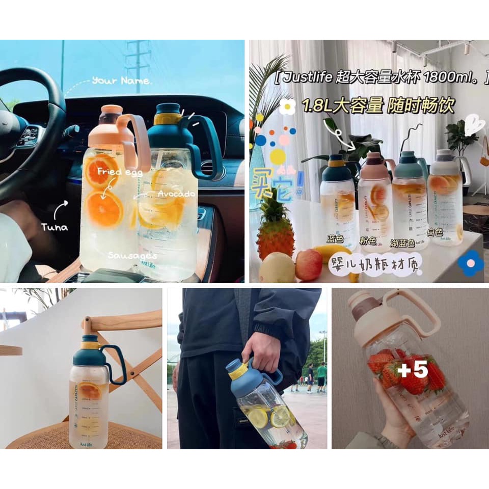 👉🏻 Bình nhựa big size 1800ml có ống hút và vạch chia ml