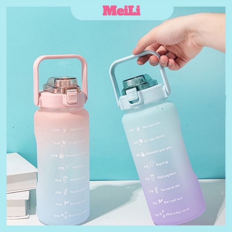 Nhà cửa & Đời sống > Bộ đồ bàn ăn > Bình nước & phụ kiện || Bình nước 2 lít FREESHIPBình màu cầu vồng cute cỡ 2000ml & 1500ml có ống hút, vạch chia nhắc giờ (tuyển sỉ).Còn hàng