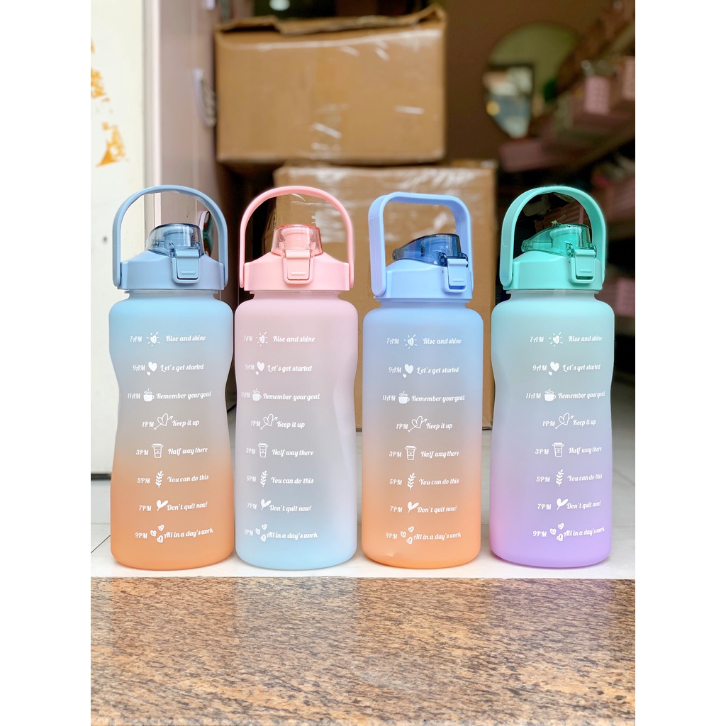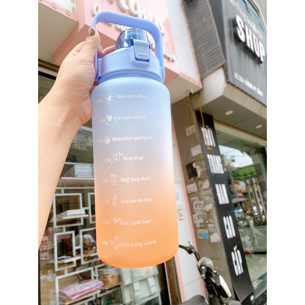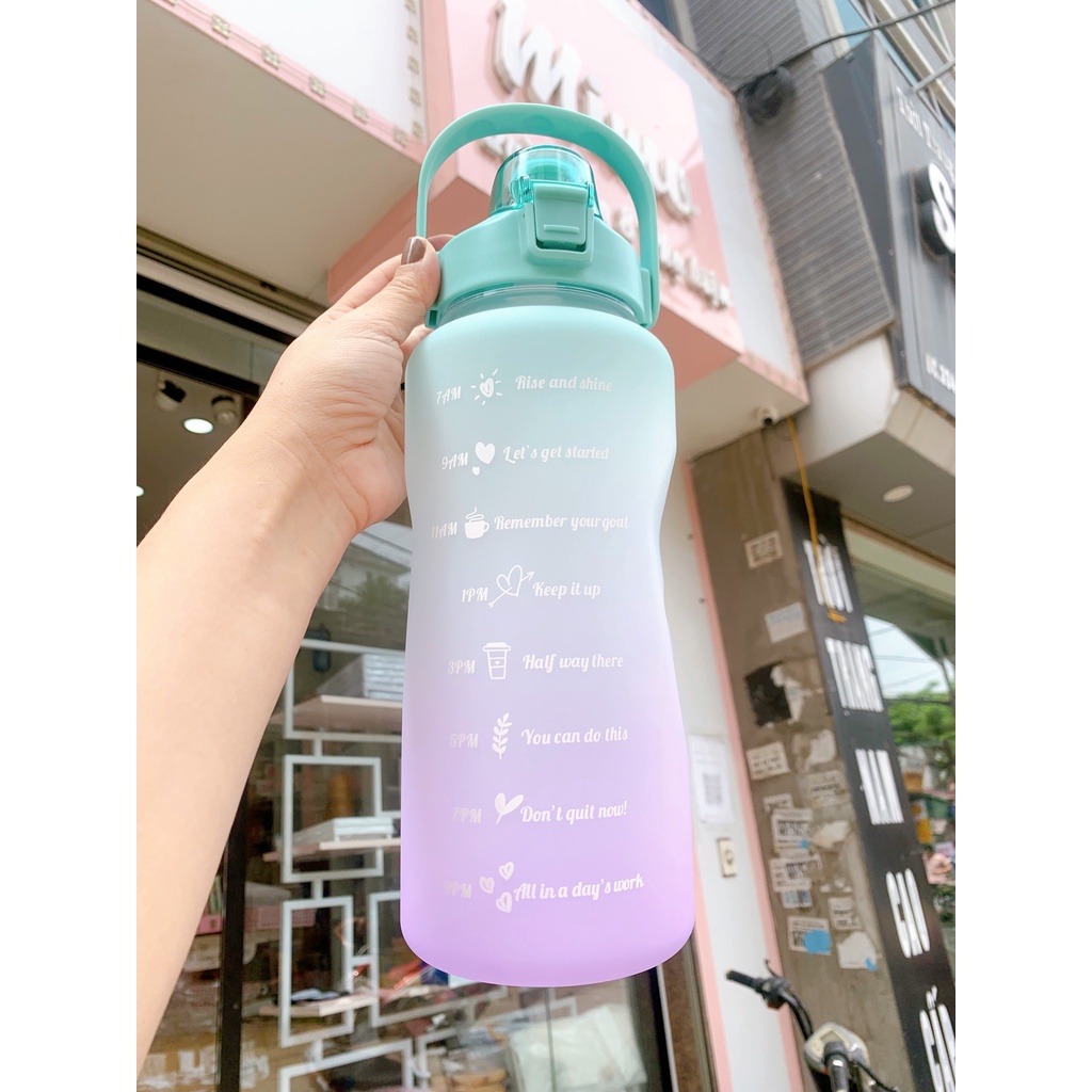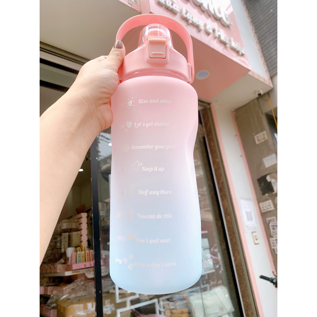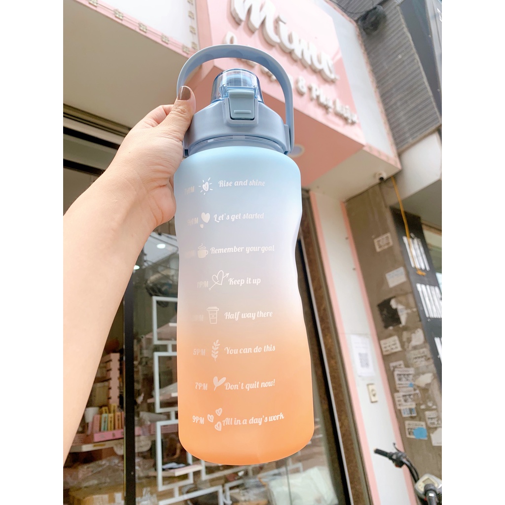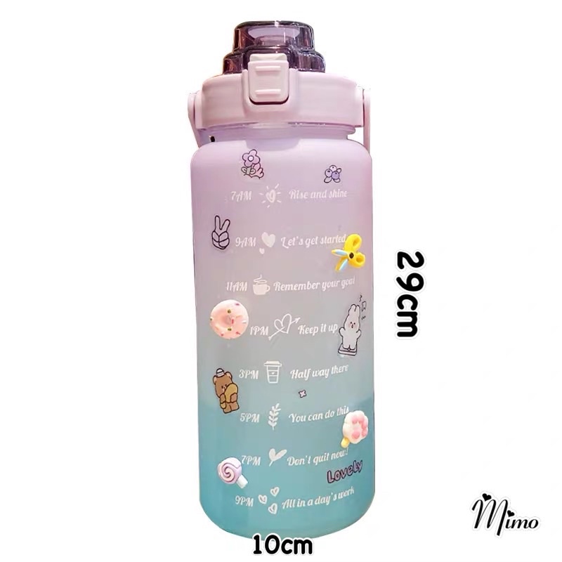 *Tên sản phẩm: Bình nước 2 lít tặng Sticker dán dành cho người lười uống nước Mimoquatangphukien bình nước cute 2L có ống hút, vạch chia nhắc giờ*Mô tả sản phẩm: