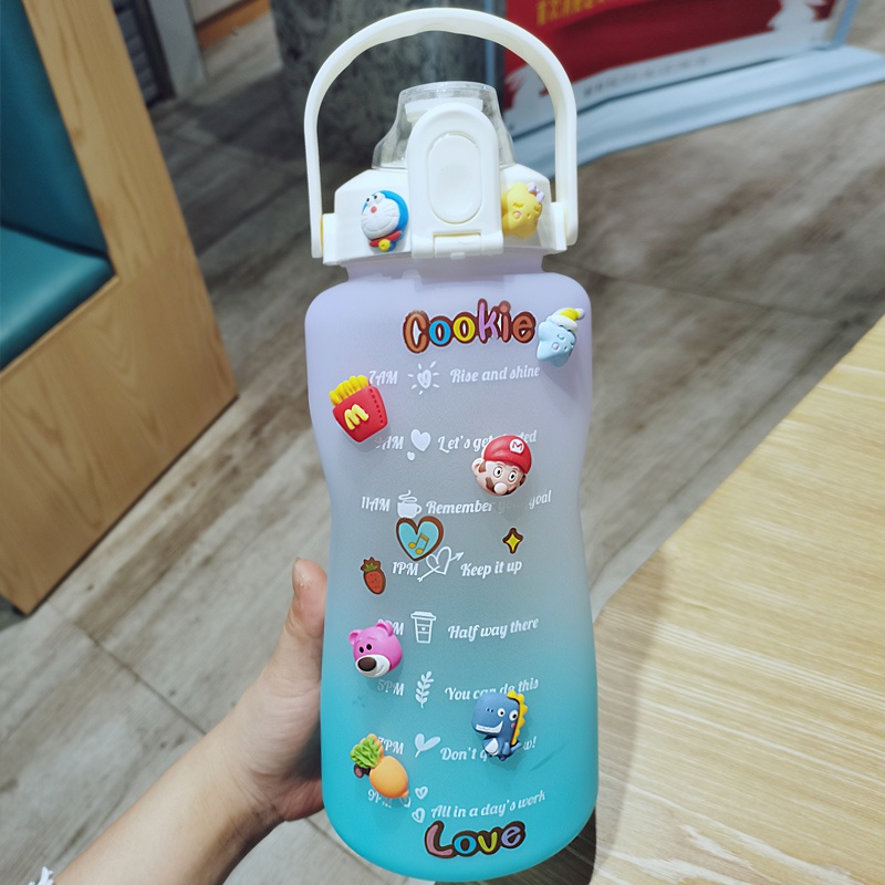 Nhà cửa & Đời sống > Bộ đồ bàn ăn > Bình nước & phụ kiện || Bình Nước 2 Lít Thể Thao Nhắc Nhở Uống Nước Mỗi Ngày Tích Hợp Ống Hút Có vạch kẻ chia ML và Báo Giờ Chất Liệu An ToànCòn hàng