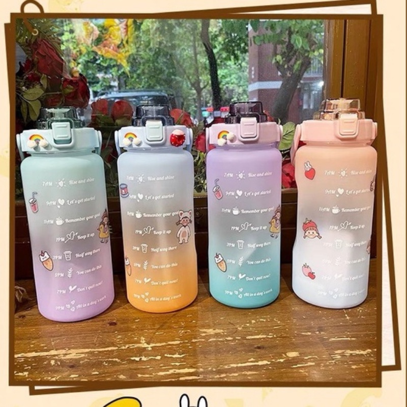 Nhà cửa & Đời sống > Bộ đồ bàn ăn > Bình nước & phụ kiện || Bình Nước 2 Lít Thể Thao Nhắc Nhở Uống Nước Mỗi Ngày Tích Hợp Ống Hút Có vạch kẻ chia ML và Báo Giờ Chất Liệu An Toàn.Còn hàng
