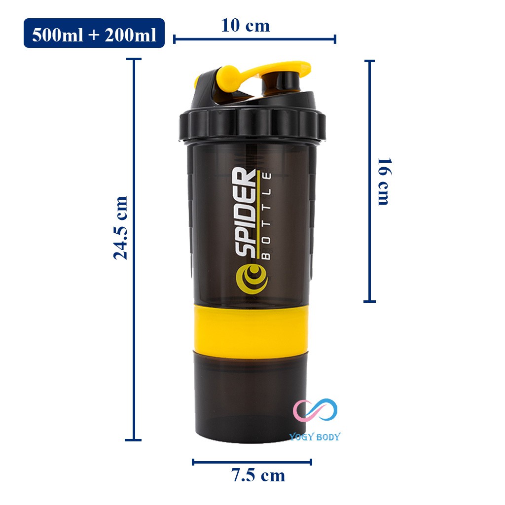 Bình Nước 3 Ngăn Tiện Lợi Spider DUTANO Có Lò Xo Lắc inox, Tập Gym, Thể Thao, Du Lịch Dung Tích 500ML
