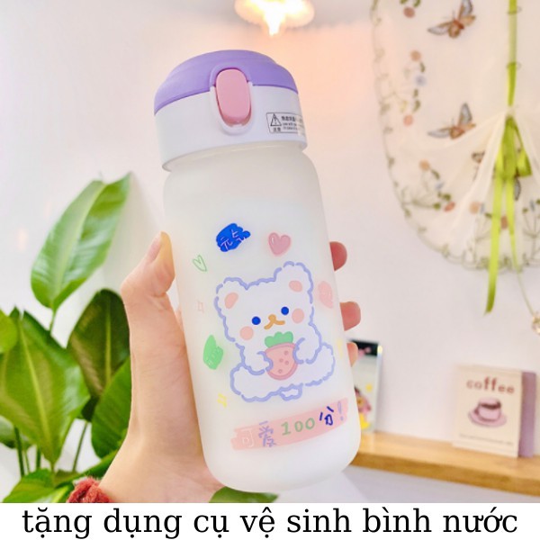Bình nước 500ml THỦY TINH CUTE loại tốt có ống hút
