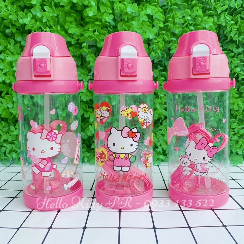 Bình nước 550ml có dây đeo Hello Kitty - Doremon Doraemon