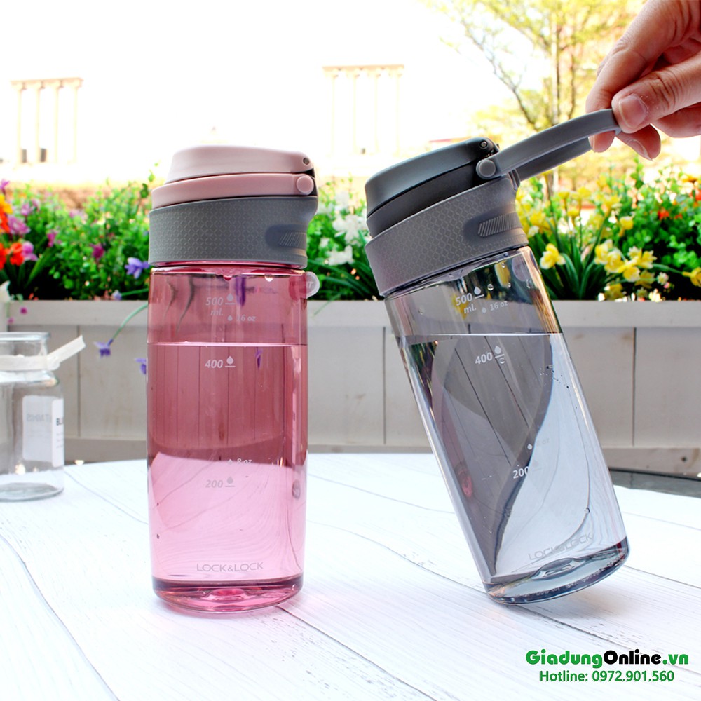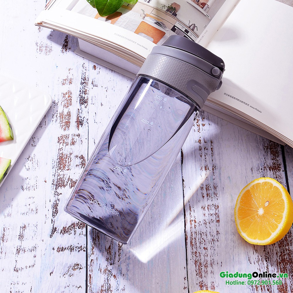 Bình Nước Bằng Nhựa Tritan One Touch Sport Lock&Lock ABF762 GRY- Xám 550ml- Thương hiệu: Chính hãng Lock&Lock