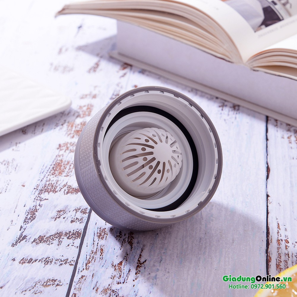 - Trong nắp có lưới lọc trà, ngăn không cho thức uống đổ tràn ra ngoài quá nhiều khi uống và giúp bạn uống trà ngon hơn. Lưới lọc có thể tháo rời để dễ dàng vệ sinh.