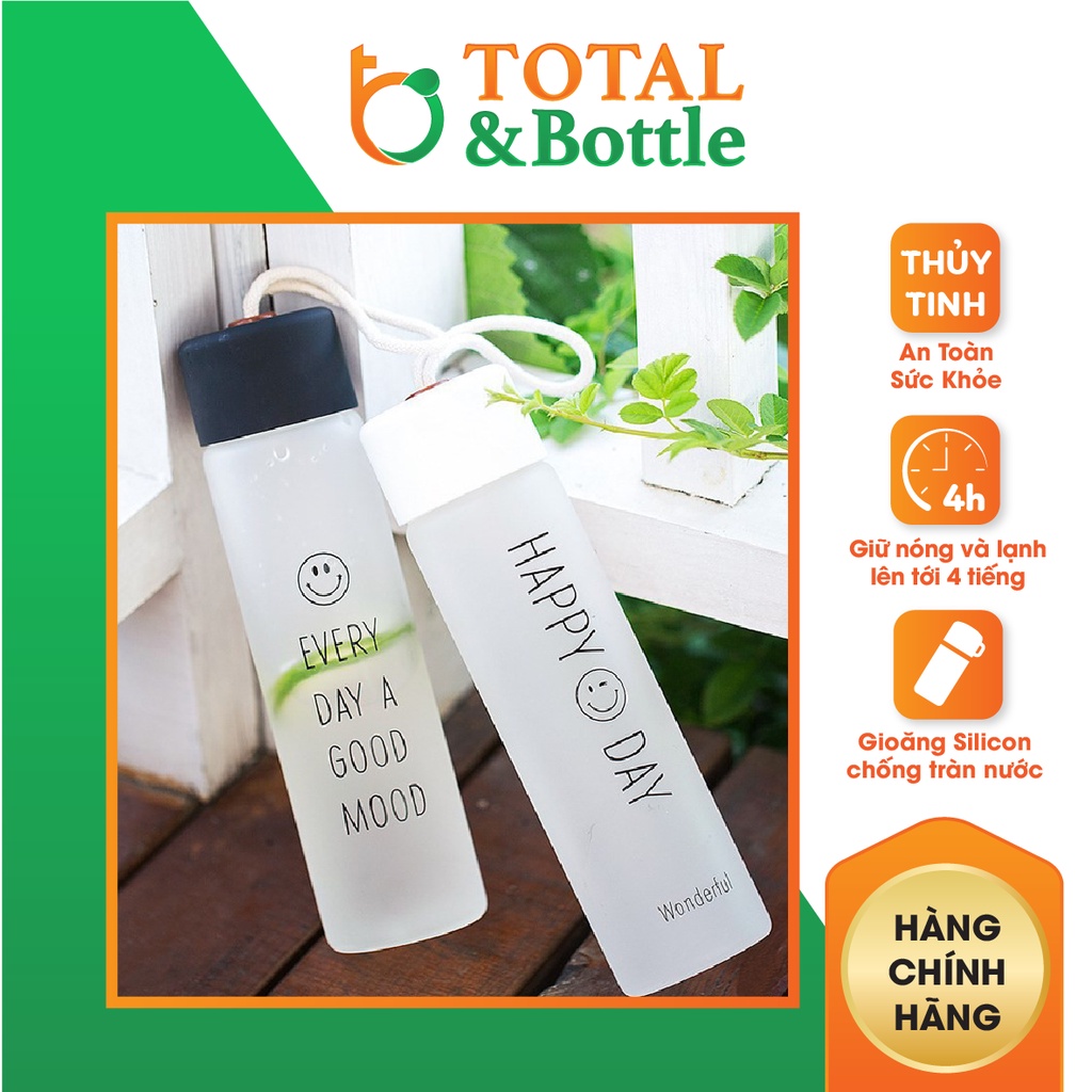 Bình nước, bình đựng nước thủy tinh sang trọng tinh tế cho phái đẹp 400ml - Total Bottle