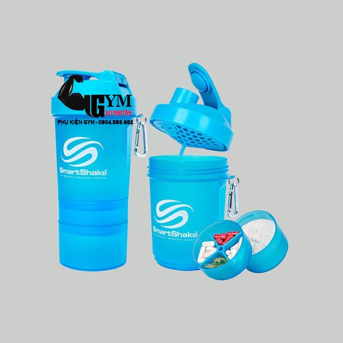 Bình lắc tập gym bình lắc thể thao smart shake 3 ngăn 400ml- Bình có nhiều ngăn giúp bạn có thể mang theo nhiều loại thực phẩm bổ sung cần thiết cho cả ngày (Vitamin, bột protein, BCAA, thuốc...)