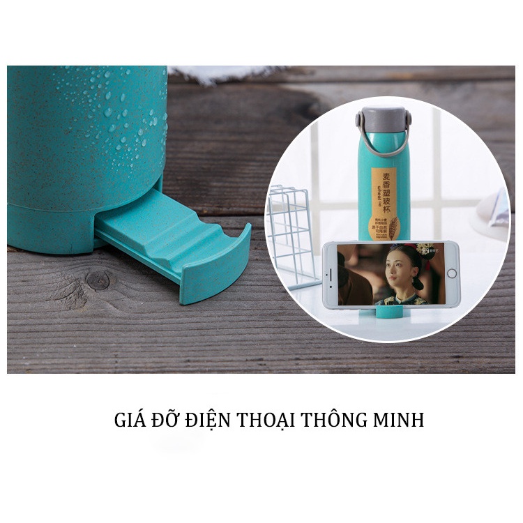 BÌNH NƯỚC CÁ NHÂN - BÌNH NƯỚC HỌC SINH CÓ GIÁ ĐỂ ĐIỆN THOẠI XINH XẮNBình nước thủy tinh cá nhân có vỏ bọc làm bằng lúa mạch rất phù hợp khi mang theo nước đi làm, đi học, tập thể thao mà không hề tốn diện tích. Việc dùng riêng bình cá nhân sẽ giúp giữ vệ sinh cho người sử dụng. Thân bình có cấu trúc nhiều lớp giúp giữ nhiệt tốt. Với thiết kế nhỏ gọn tiện lợi khi di chuyển.