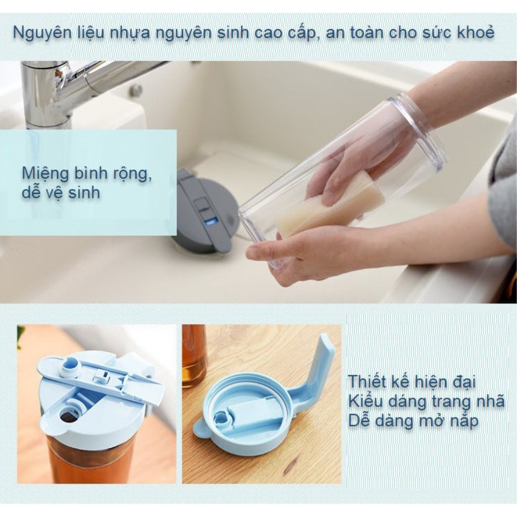 Sản phẩm sở hữu màu sắc nổi bật và nắp đậy kín, giúp chống tràn nước hiệu quả với thiết kế miệng bình rộng giúp vệ sinh dễ dàng.