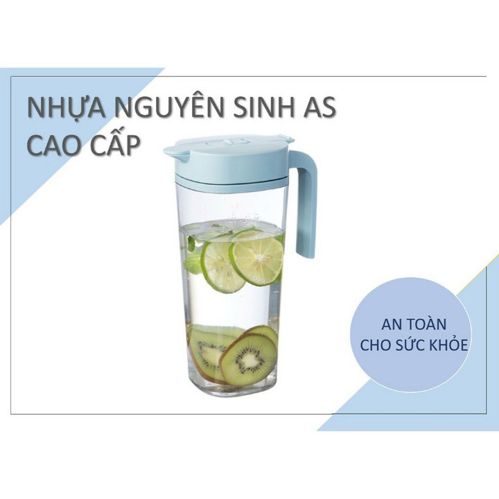 Nguyên liệu nhựa nguyên sinh cao cấp, an toàn cho sức khoẻ. Đạt tiêu chuẩn khắt khe cho các sản phẩm gia dụng, thực phẩm, y tế của Nhật Bản.Bình đựng nước có quai được sản xuất từ chất liệu nhựa AS nguyên sinh an toàn, bền và đặc biệt không gây độc hại cho sức khỏe người tiêu dùng. Chất liệu này cũng thân thiện với môi trường và dễ vệ sinh.
