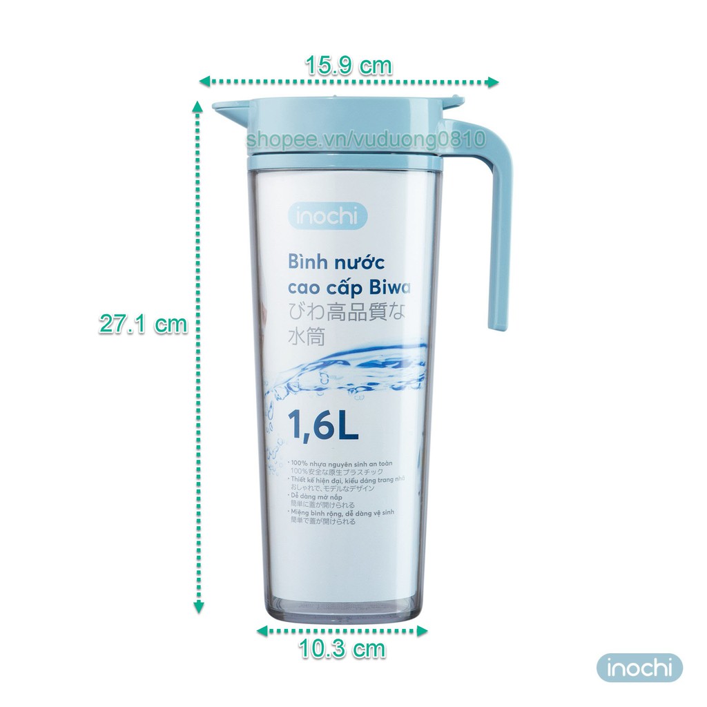 Bình nước cao cấp Inochi 1.6L có chất liệu nhựa AS nguyên sinh 100%. Sản phẩm đáp ứng các yêu cầu về an toàn, độ bền và đặc biệt không gây hại tới sức khoẻ con người trong suốt quá trình sử dụng.
