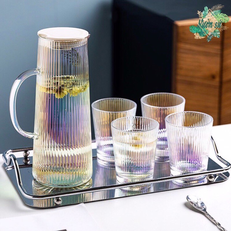 Nhà cửa & Đời sống > Bộ đồ bàn ăn > Bình nước & phụ kiện || Bộ bình nước chịu nhiệt họa tiết vân sọc kẻ cao cấp - VS125Còn hàng