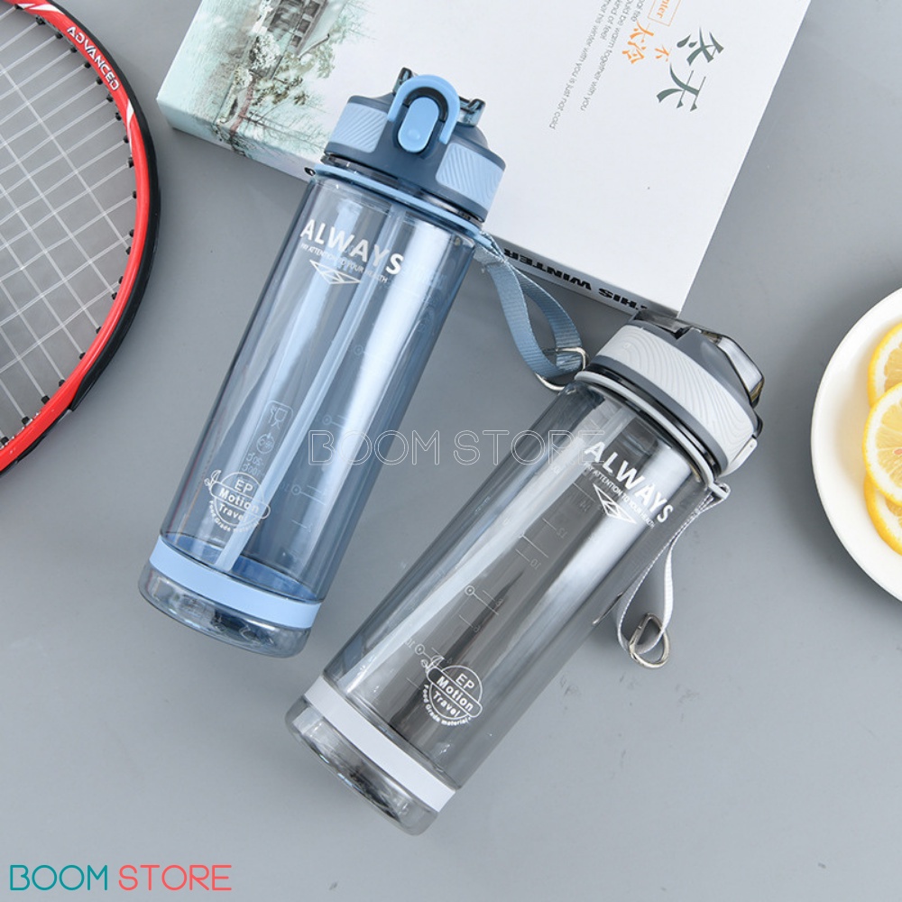 Bình nước cho bé đi học có ống hút có quai đeo nắp bật chia vạch cute 800ml cao cấp Boom Store BN03