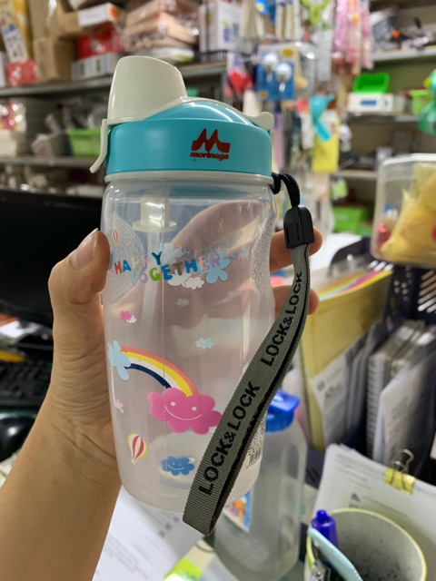 - Nắp đậy kín dạng xoay với nút bật mở tiện lợi, chống rò rỉ nước và ngăn ngừa bụi bẩn, vi khuẩn xâm nhập hiệu quả. Nắp còn được trang bị thêm ống hút giúp các bé dễ dàng sử dụng.